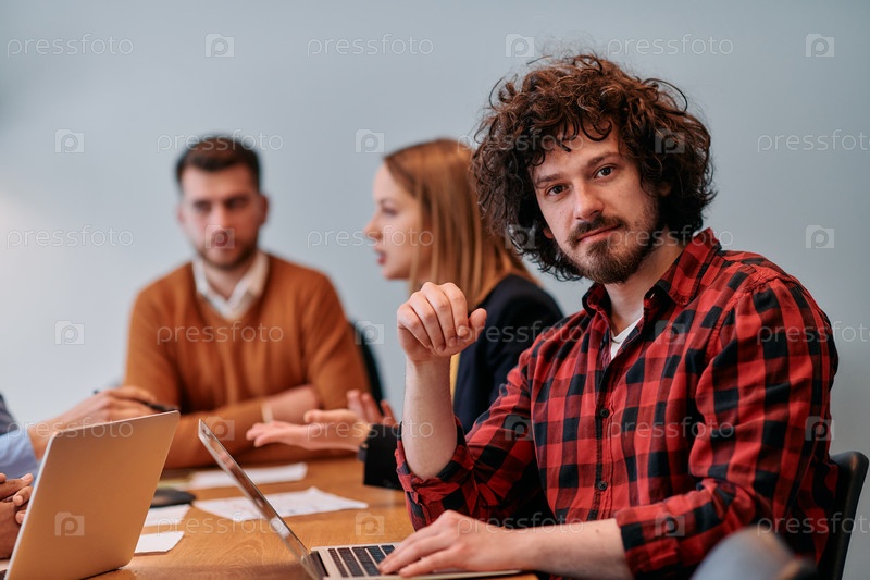 В яркой атмосфере современного офиса стартапа разнообразная команда профессионалов в сфере бизнеса участвует в обсуждениях различных проектов и разрабатывает новые бизнес-стратегии, олицетворяя креативность и инновации в предпринимательской среде