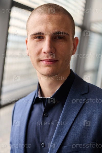 Молодой успешный предприниматель в современной обстановке конференции