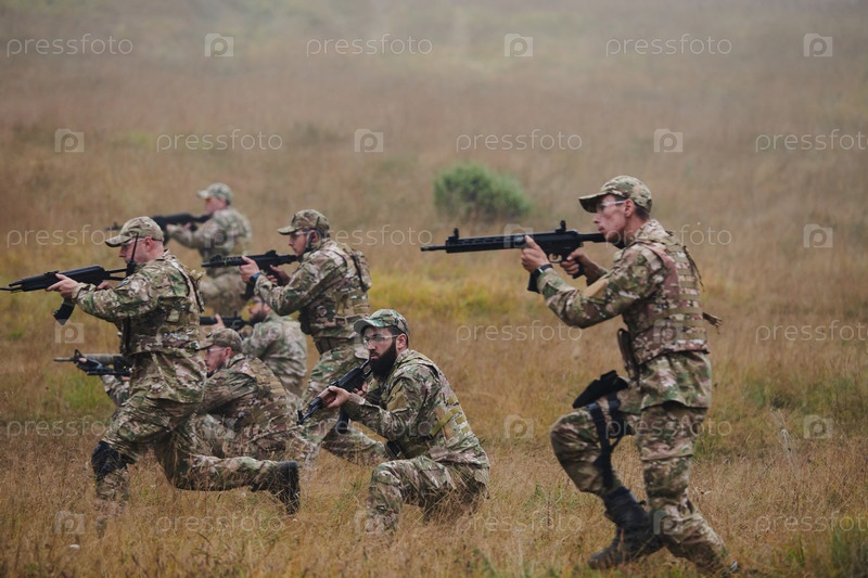 Дисциплинированное и специализированное военное подразделение, облаченное в камуфляж, осуществляющее стратегическое патрулирование и сохраняющее контроль в обстановке с высокими ставками, демонстрирующее свою точность, сплоченность и готовность к специаль