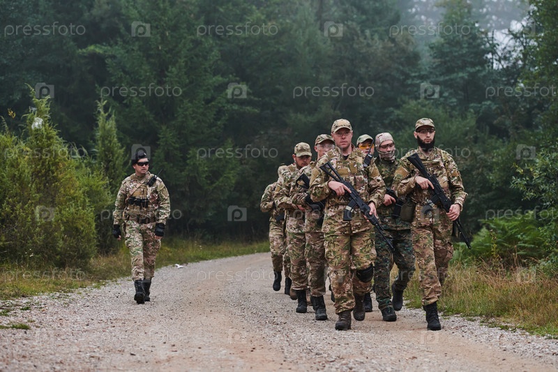 Элитное воинское подразделение под командованием майора уверенно марширует по густому лесу, демонстрируя точность, дисциплину и готовность к высокорискованным операциям
