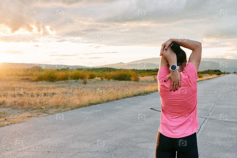 Спортсмен растягивается на закате после интенсивной пробежки