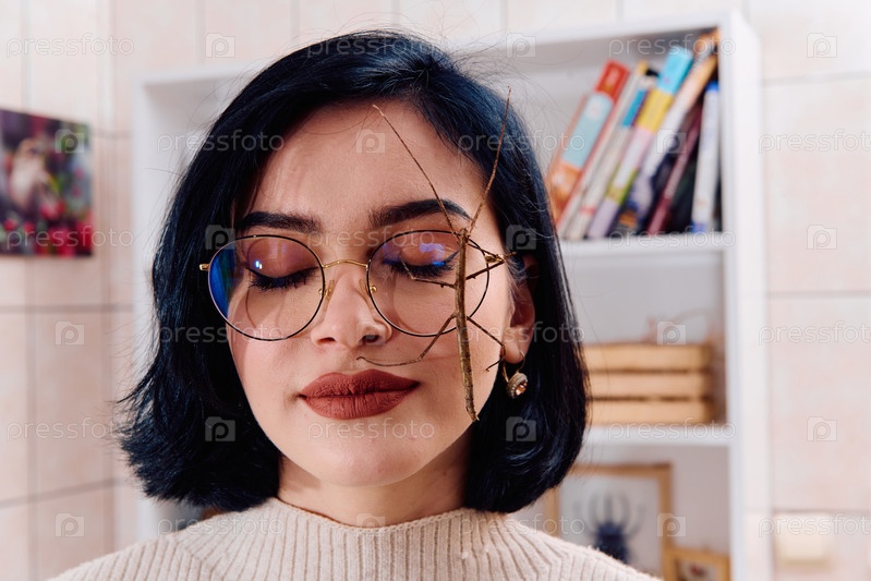Молодая женщина, сфотографированная в прекрасный момент со своей палкой (Medauroidea Extradentata)