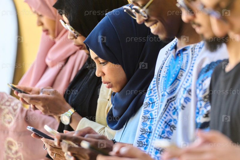 Группа подростков стоит вместе у стены, используя смартфоны
