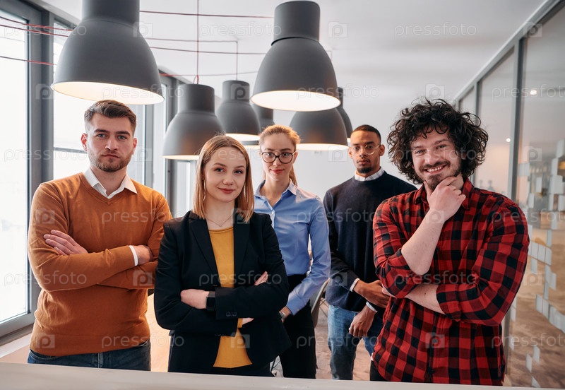 Разнообразная бизнес-команда, сплоченная в современном офисе, готовая к новым вызовам