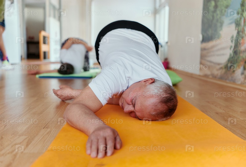 Пожилой мужчина выполняет упражнения для шеи и спины, способствующие здоровому старению и благополучию