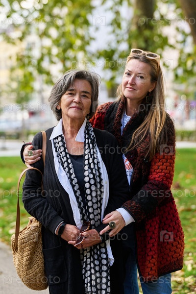 Сердечные объятия: дочь поддерживает свою мать в прекрасный осенний день