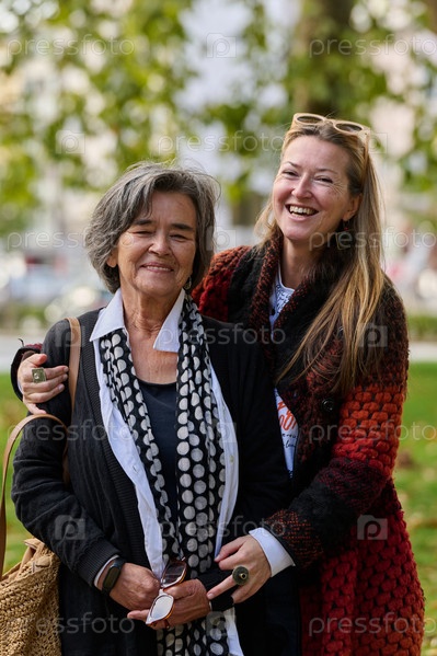 Сердечные объятия: дочь поддерживает свою мать в прекрасный осенний день