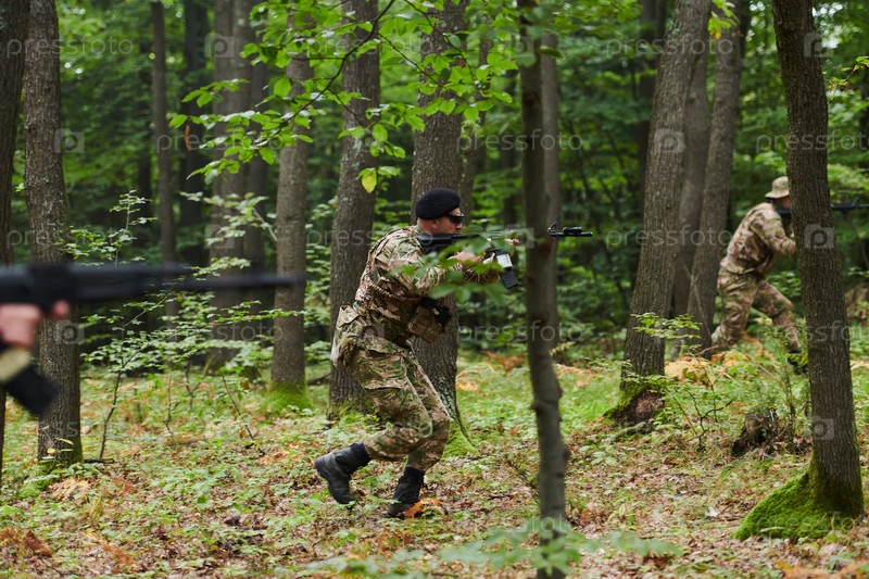 Дисциплинированное и специализированное военное подразделение, облаченное в камуфляж, осуществляющее стратегическое патрулирование и сохраняющее контроль в обстановке с высокими ставками, демонстрирующее свою точность, сплоченность и готовность к специаль