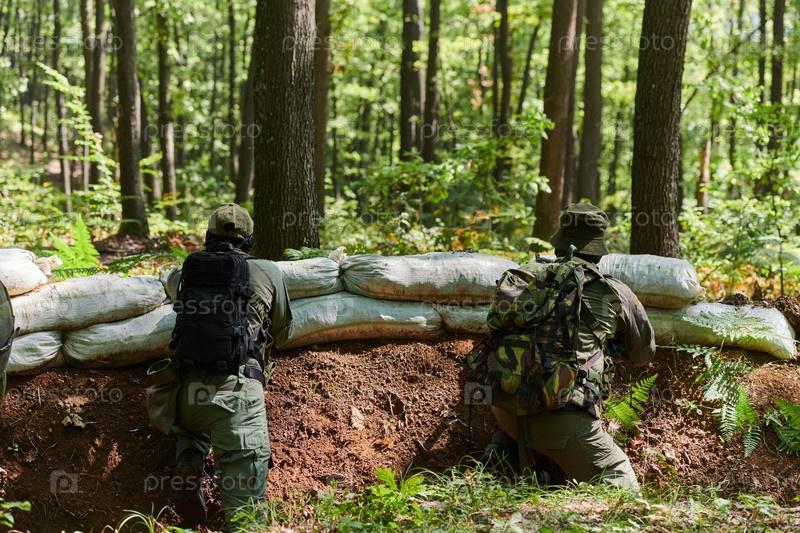Двое элитных солдат стоят на страже, решительные и бдительные, защищая территорию от нападающих врагов с тактической точностью и непоколебимой решимостью, демонстрируя свою роль умелых защитников перед лицом потенциальных угроз