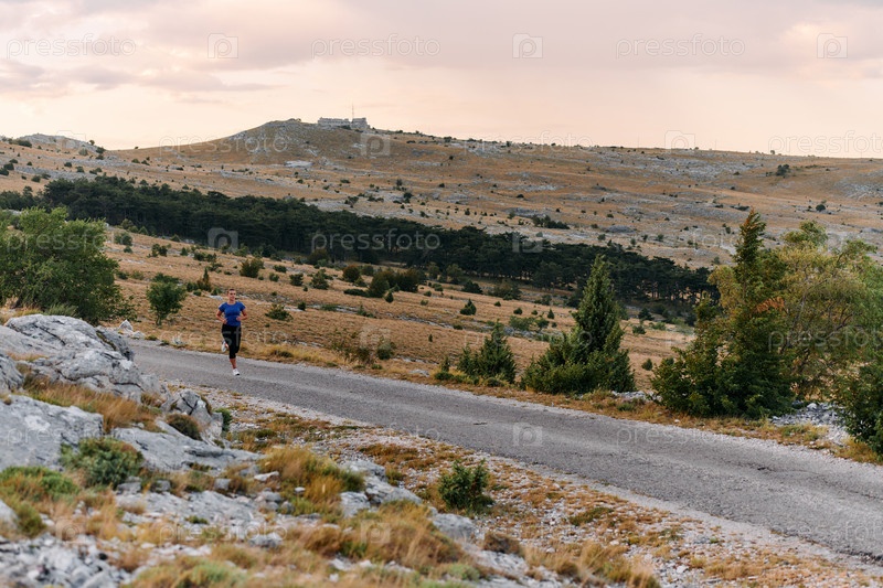 Воодушевленный бегун наслаждается красотой природы на спокойной утренней пробежке