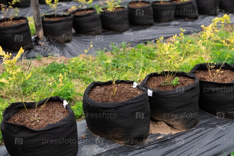 Молодые саженцы черники готовы к будущему производству свежих соков