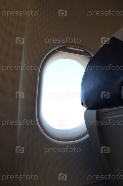 Иллюминатор в самолете с открытой шторкой