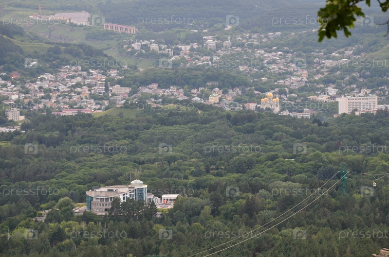 Панорама города Кисловодск со смотровой площадки в верхней точке Курортного парка