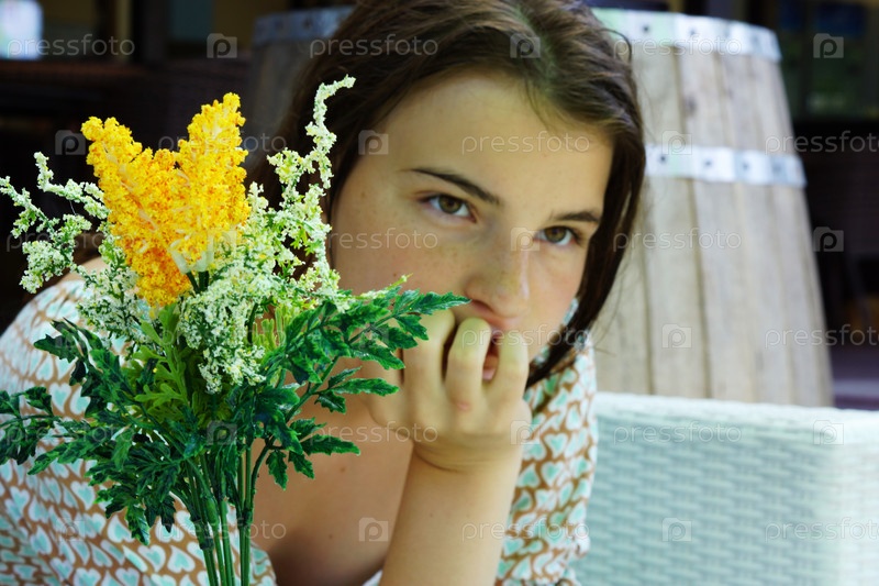 Девушка с букетом цветов