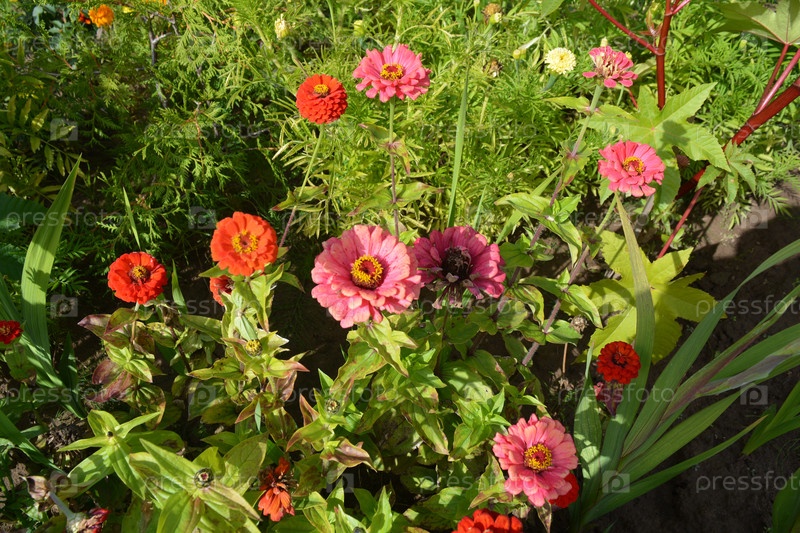 Красивые розовые и красные циннии