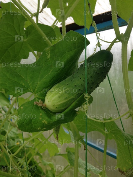Огурец растет в теплице