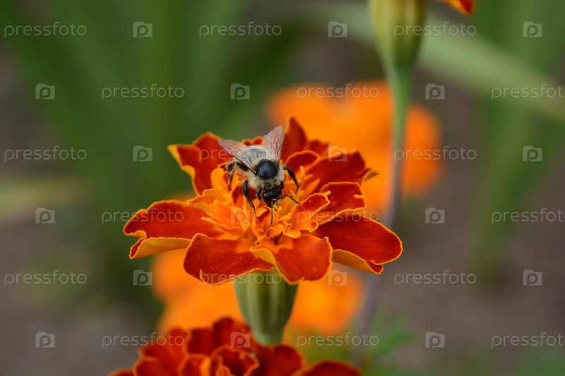 Пчела на цветке бархатцев