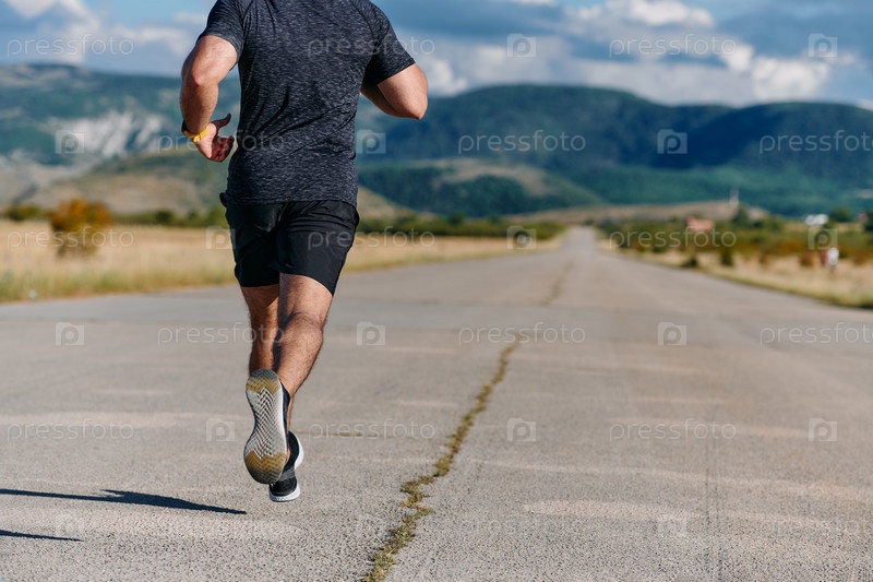 Спортивный мужчина бегает трусцой на солнце, готовя свое тело к экстремальным испытаниям жизни