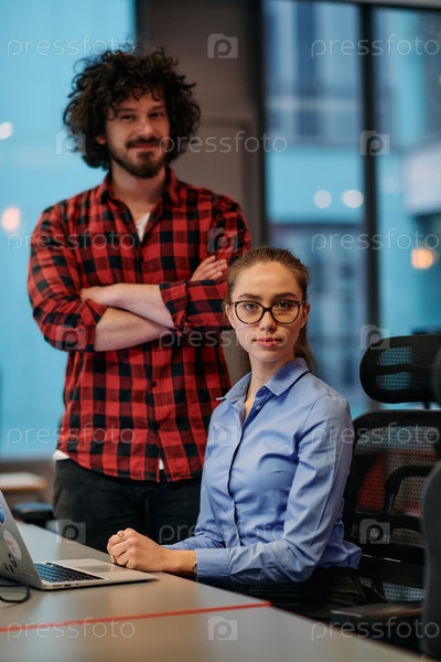 Молодая европейская бизнес-команда работает за компьютером в современном офисе