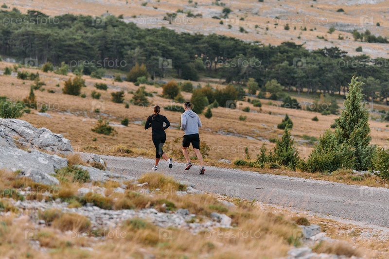Бодрящая утренняя пробежка для пары в горах