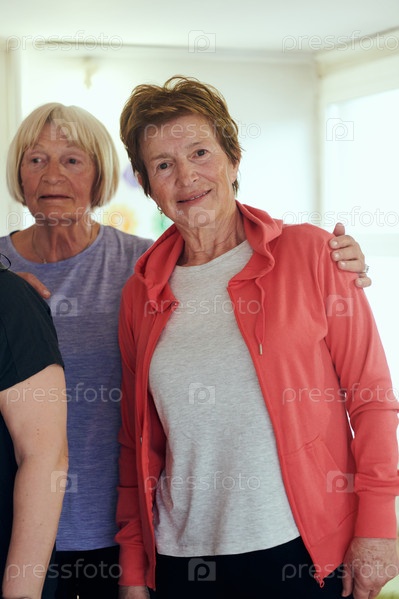 Активное сообщество пожилых женщин под руководством инструктора принимает участие в обогащающем пути йоги, способствуя единению, благополучию и общей приверженности активному старению