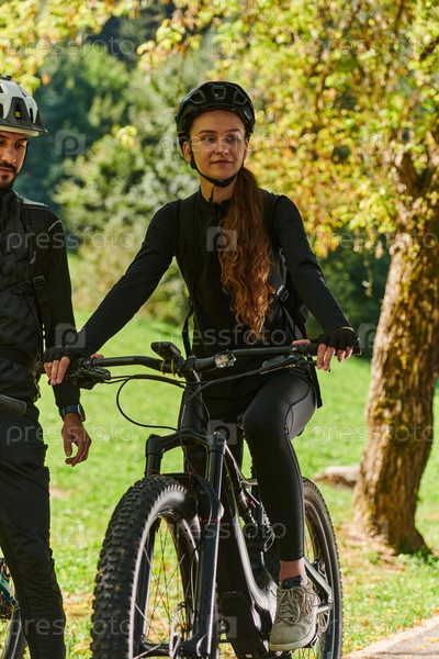 Милая парочка, вооруженная велосипедами и поглощенная планированием своего путешествия, проверяет свои мобильные телефоны и часы, планируя живописные маршруты в парке, органично сочетая технологии и приключения на свежем воздухе для восхитительного опыта