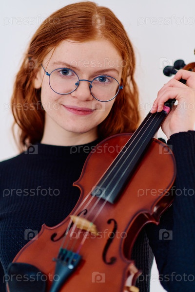 Потрясающая рыжеволосая музыкантша позирует со скрипкой на пленительном портрете