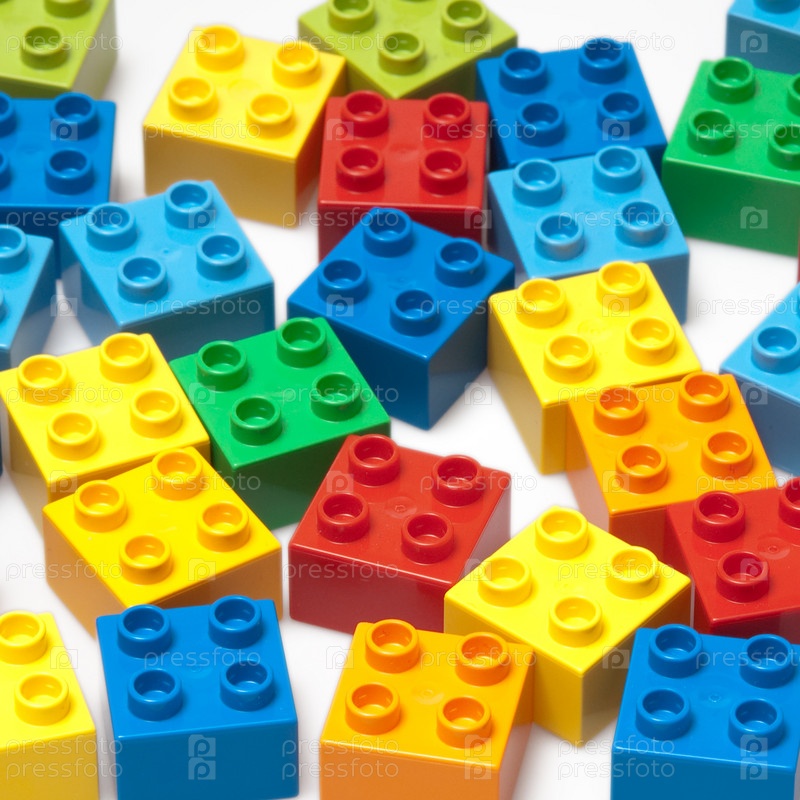 Разноцветные детали конструктора на белом фоне