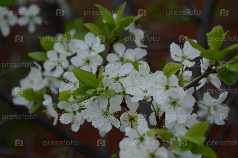 Цветущая ветка вишни в саду весной