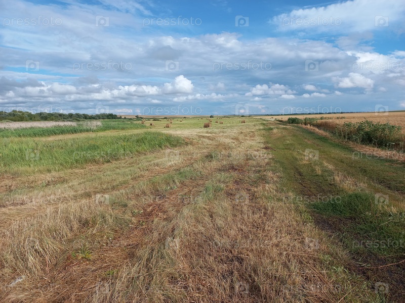 Поле с валками сена. Уборка урожая. Воронежская область