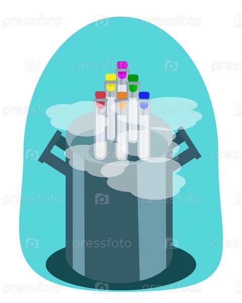 Открытая канистра с пробирками с замороженными яйцеклетками, спермой, эмбрионами