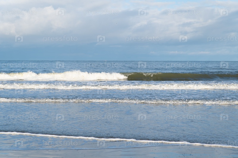 Прибой на побережье Балтийского моря. Волны на песчаном пляже
