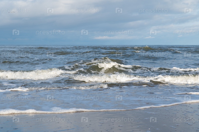 Прибой на побережье Балтийского моря. Волны на песчаном пляже