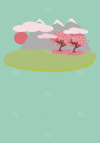 Горный весенний пейзаж цветущая сакура у воды - вертикальный