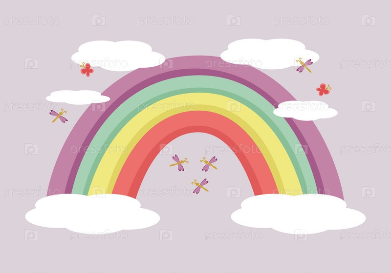 Радуга, бабочки, стрекозы и облака