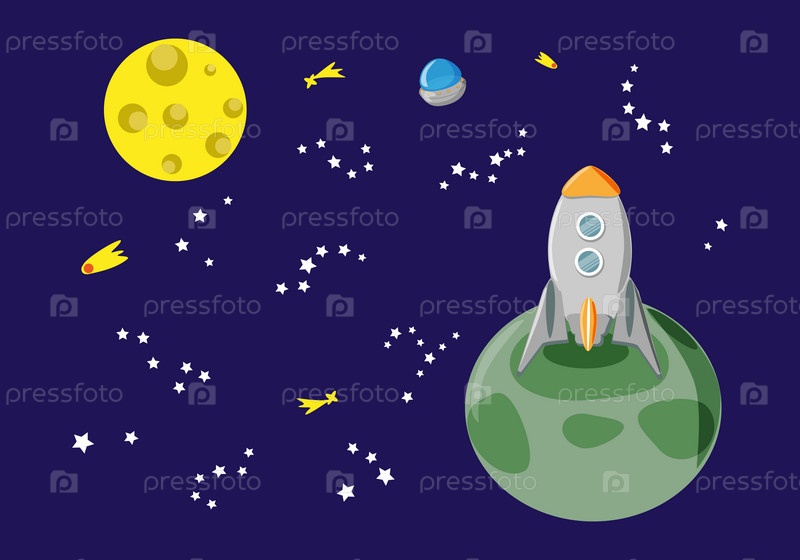 Космический пейзаж с ракетой, стоящей на неизвестной планете - горизонтальный