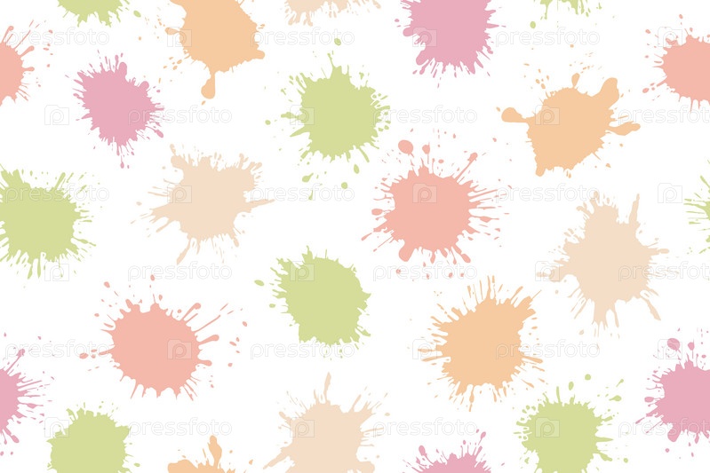 Бесшовный узор из красочных брызг. Яркие красочные пятна, модный современный фон. Векторные брызги краски. Вектор
