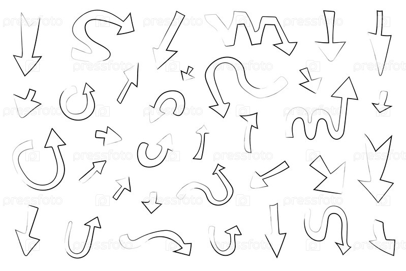 Черные и белые стрелки указывают в разных направлениях и имеют разные формы: прямые, изогнутые, круглые, изогнутые