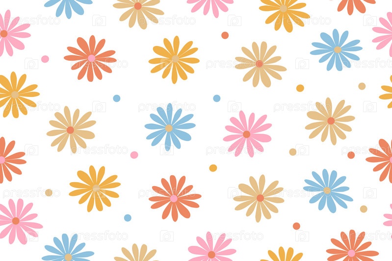 Садовый цветок, растения, ботанический, бесшовный векторный дизайн для моды, ткани, обоев и всех принтов. Маленькие яркие цветы. Векторная иллюстрация