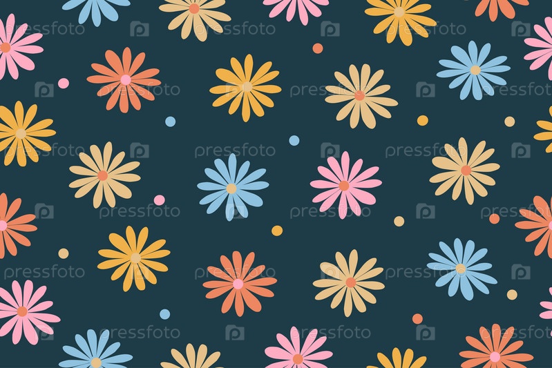 Садовый цветок, растения, ботанический, бесшовный векторный дизайн для моды, ткани, обоев и всех принтов. Маленькие яркие цветы. Векторная иллюстрация