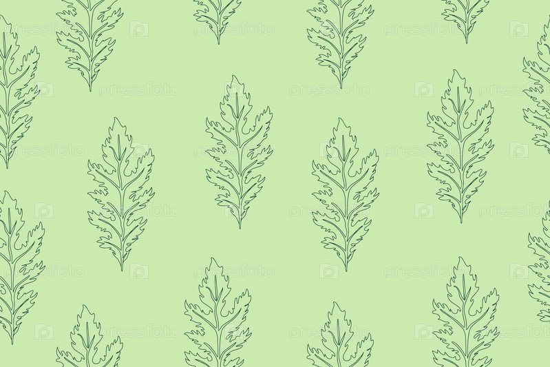 Бесшовный узор из зеленых листьев салата Мизуна. Линейный стиль Мизуна. Векторная иллюстрация японской горчицы. Векторная иллюстрация