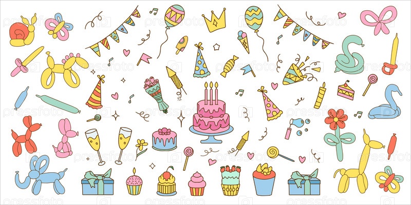 Набор красочных элементов в стиле граффити Happy Birthday, изолированных на белом фоне. векторная иллюстрация
