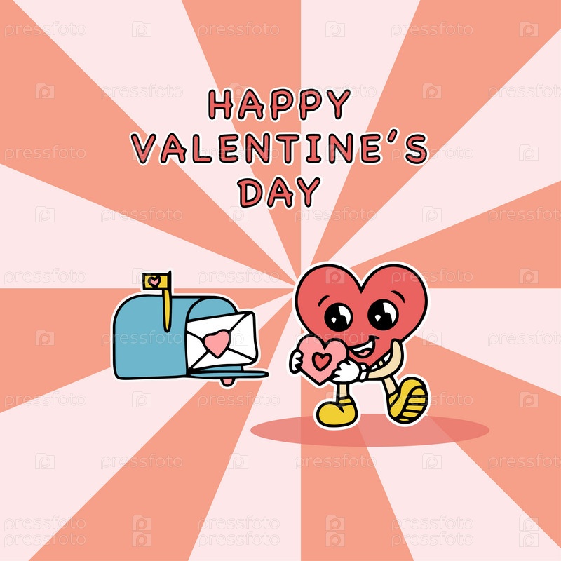 Милые забавные сердечки на ретро фоне. Милые символы любви с лицами в разных позах, руками и ногами, забавными положительными эмоциями. Векторная иллюстрация ко Дню святого Валентина. Векторная иллюстрация
