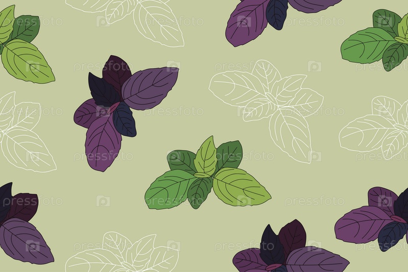 Бесшовный узор с листьями мяты. Цветочный фон со свежим листом мяты. Лекарственные растения и травы. Векторная иллюстрация. Векторная иллюстрация
