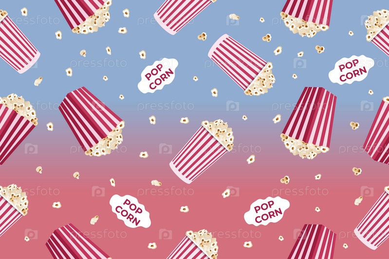 Бесшовный узор попкорна в красно-белом ведре. Векторная иллюстрация. День попкорна. Векторная иллюстрация