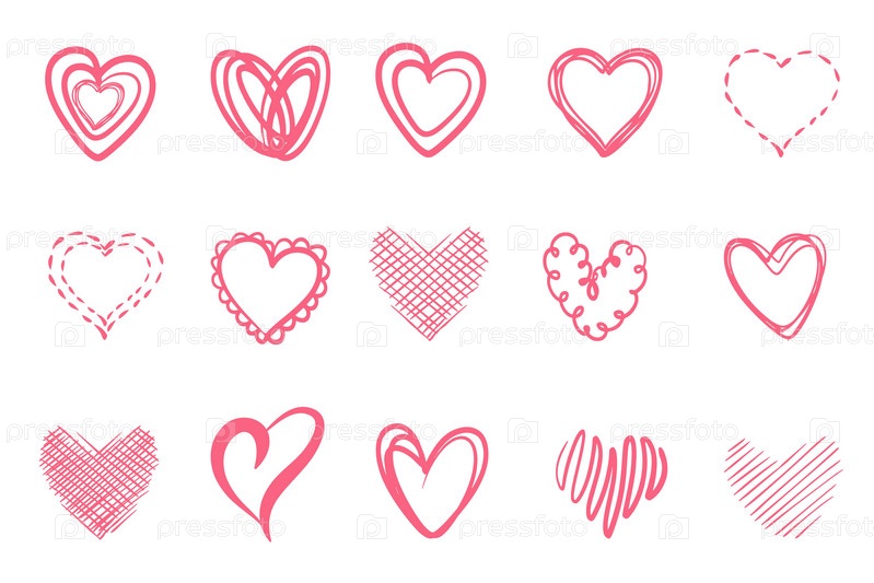 Сердца любовь набор. Розовые сердца рисованной. День святого Валентина февраль, розовый. Векторная иллюстрация