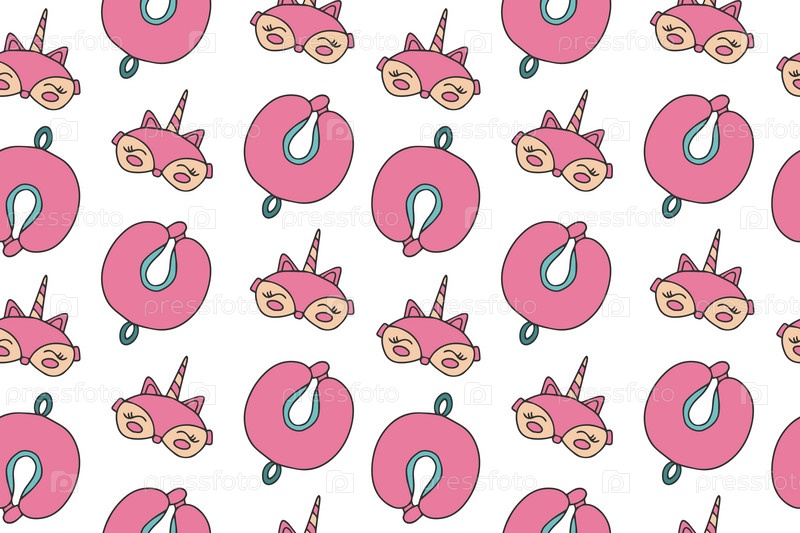 Бесшовный узор с масками для сна и ортопедической подушкой
