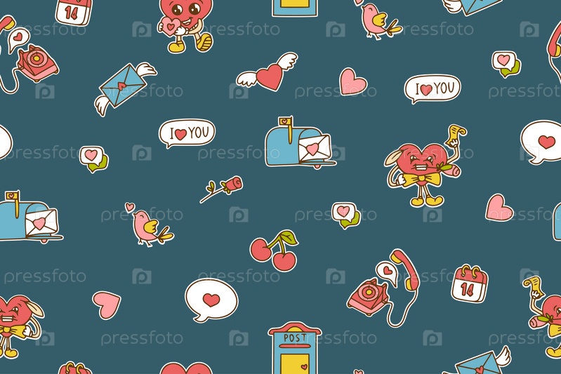 Прекрасный фон. Концепция любви. Поздравительная открытка на день Святого Валентина. Веселый узор и текстура в модном ретро 60-х 70-х. Векторный бесшовный узор