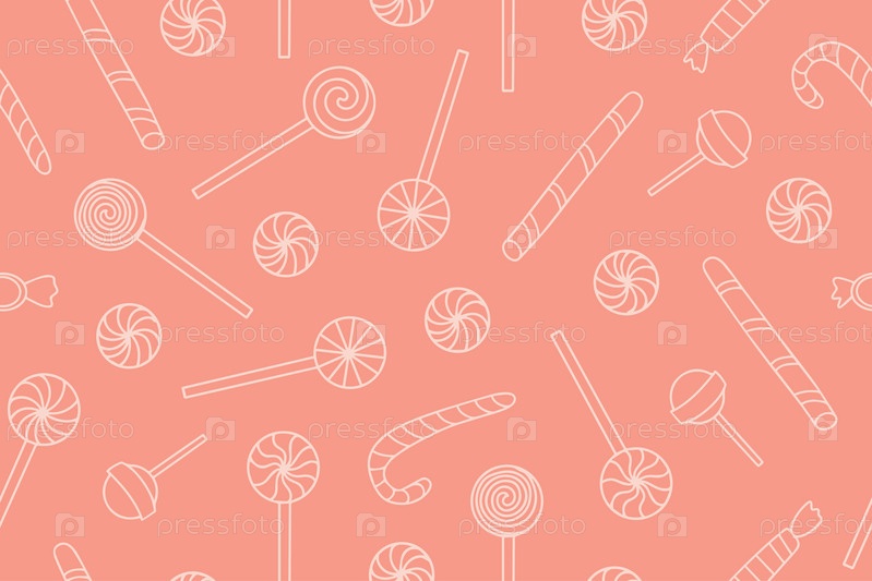 Векторный бесшовный узор из леденцов. Сладкий фон для дизайна упаковки, праздника, обоев, книг, веб-сайта, украшения. Вектор