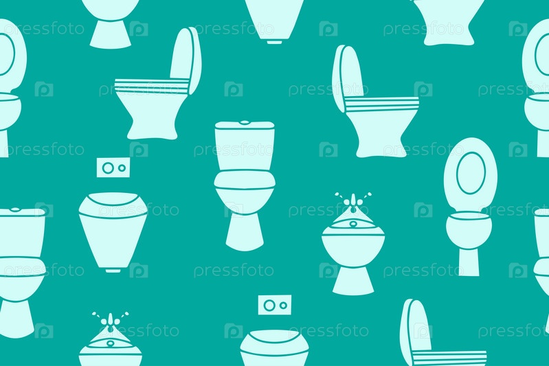 Бесшовный узор с туалетами разных форм. Всемирный день туалета. Векторная иллюстрация. Векторная иллюстрация
